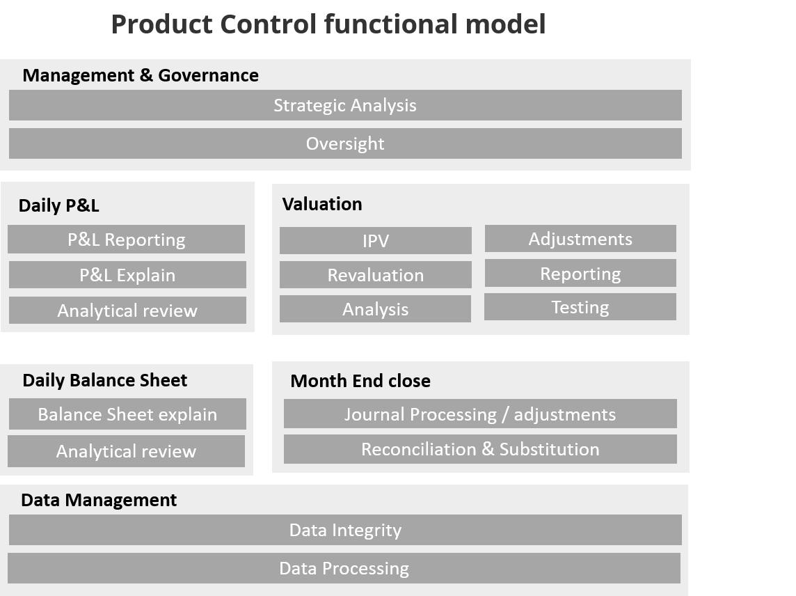 Generally speaking, Product Control act as an in house guardian of data and information in an Investment Bank which ensures integrity, completeness and accuracy of all trading profit and loss positions and related finance data. Product control sits within the finance department and is aligned to support the business. We are here to guide you through all the functions performed by the Product Control department through its Divisions.